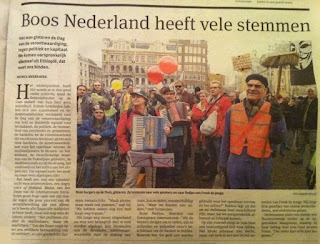 * De overhandiging van het Nationale Kado. Marc Rutte, onze premier, kreeg uit handen van Jan Troost en Harry Scheurs, in bijzijn van Theo Hendrikse en ondergetekende (die daar foto’s van maakte) tijdens het VVD-congres in Zaandam, november j.l. , een bijzonder schilderij uitgereikt.