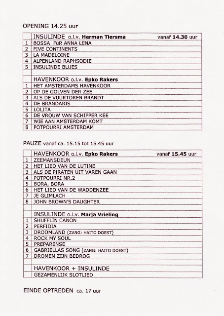 Op zondag 9 november 2014 traden de Amsterdamse Accordeon-vereniging Insulinde en het Amsterdams Havenkoor samen op in de Oosterkerk in Amsterdam.
