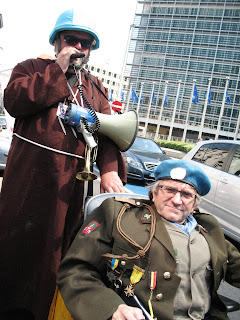 Aangekomen bij ingang Lange Poten stonden buiten wel zo’n twintig zwaar bewapende MP’s. Toch kwamen we zonder problemen de beveiligingspoortjes weer door. Al ging mijn beugel BH wel weer af. En maakte het detectieapparaat overuren bij het afstruinen van zowel de rolstoel van Gerda als het ijzer dat zich (als gevolg van medische experimenten in de jaren ’70 in de Nijmeegse St. Maartenskliniek) in haar lichaam bevindt.