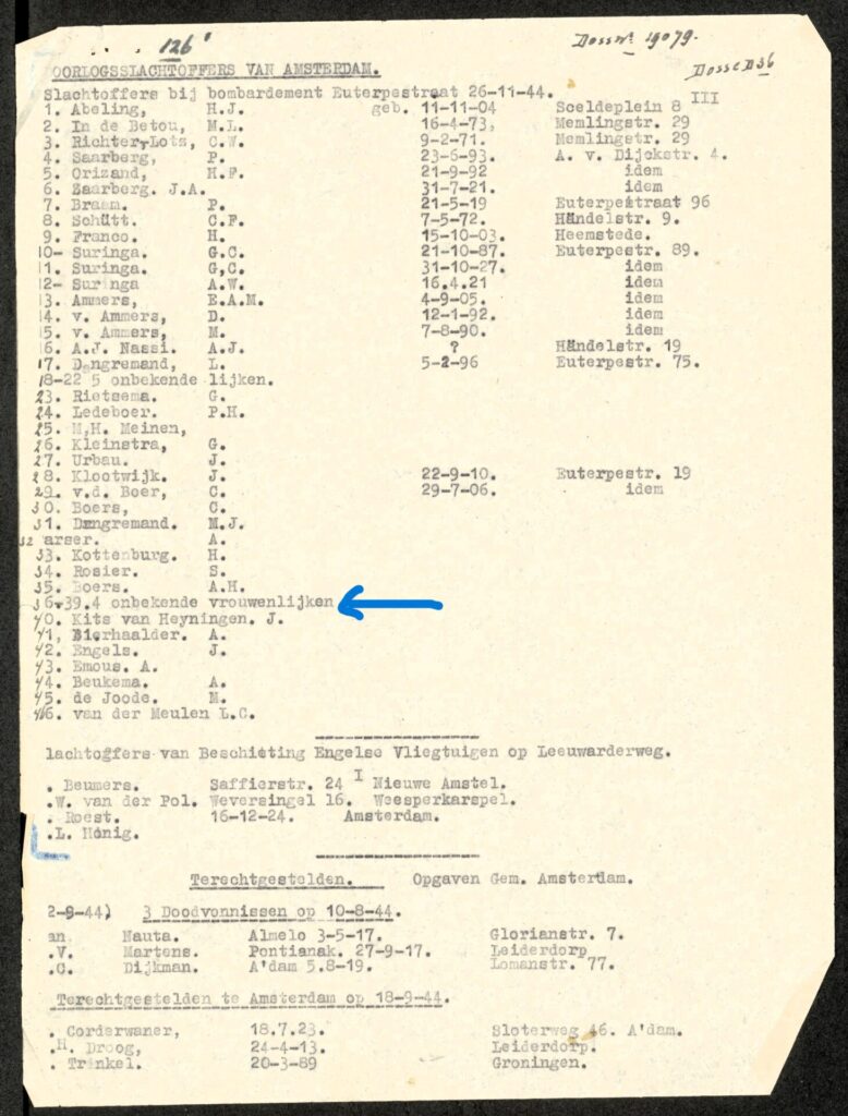 Verder een aantal onbekende vrouwen, de nummers 36 tot 39.