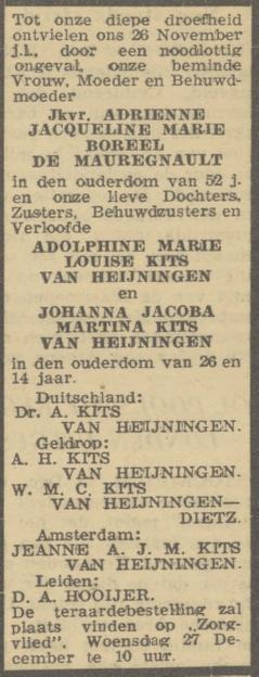 Wat ook opviel in de rouwadvertentie was de vermelding: ‘Duitsland, dr. A. Kits van Heijningen.’