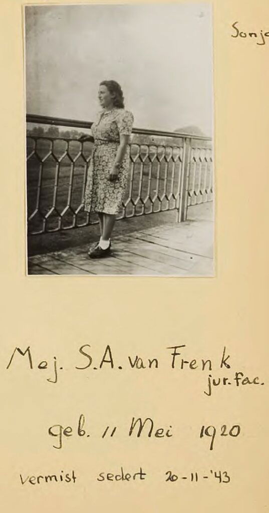 (Mede door de beperkende maatregelen die de joodse Sonja werden opgelegd, ging Hannie in het verzet. Sonja zat een tijdje ondergedoken bij de ouders van Hannie in Haarlem. Zij overleefde de oorlog niet. Op 23 november 1943 werd zij vermoord in concentratiekamp Auschwitz.)